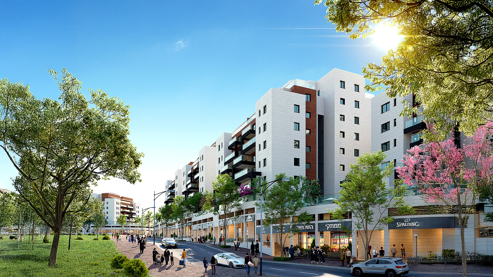 הלב הפועם של השכונה מתחם בוטיק של חנויות ושירותים ממש ביציאה מהבניין—נוחות יומיומית בלי לנסוע לשום מקום.