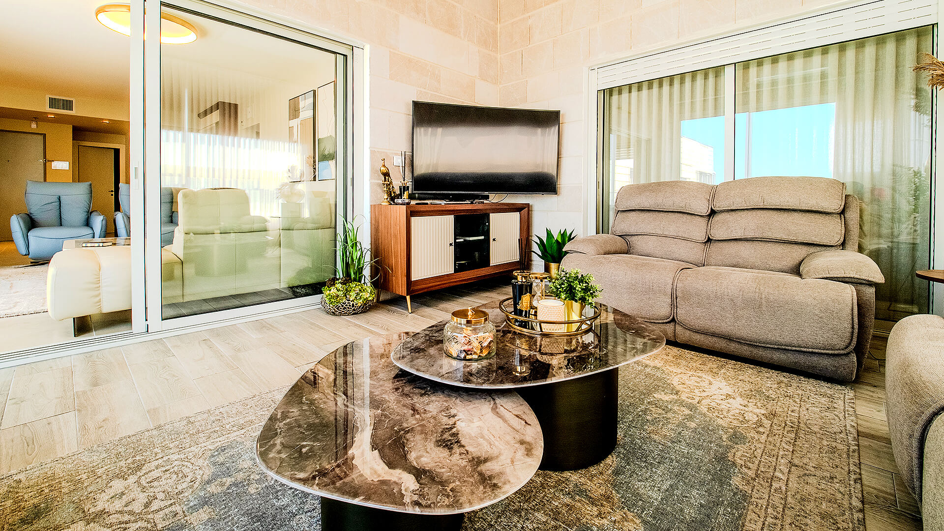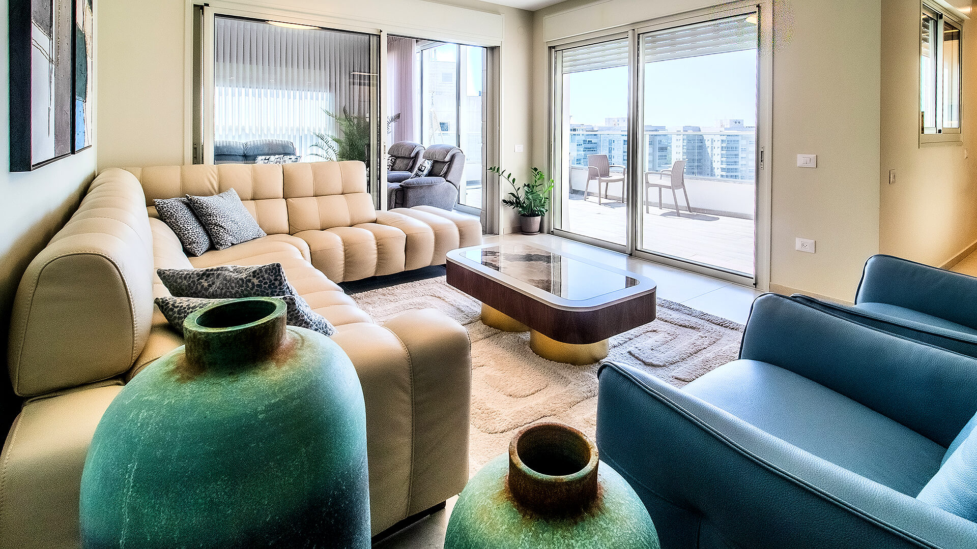 איכות יומיומית מורגשת מיזוג מיני-מרכזי, ריצוף פורצלן 80×80, תריסים חשמליים, אינטרקום טלוויזיה, מטבח משודרג עם ברז נשלף ושקע תלת-פאזי לכיריים ועוד.