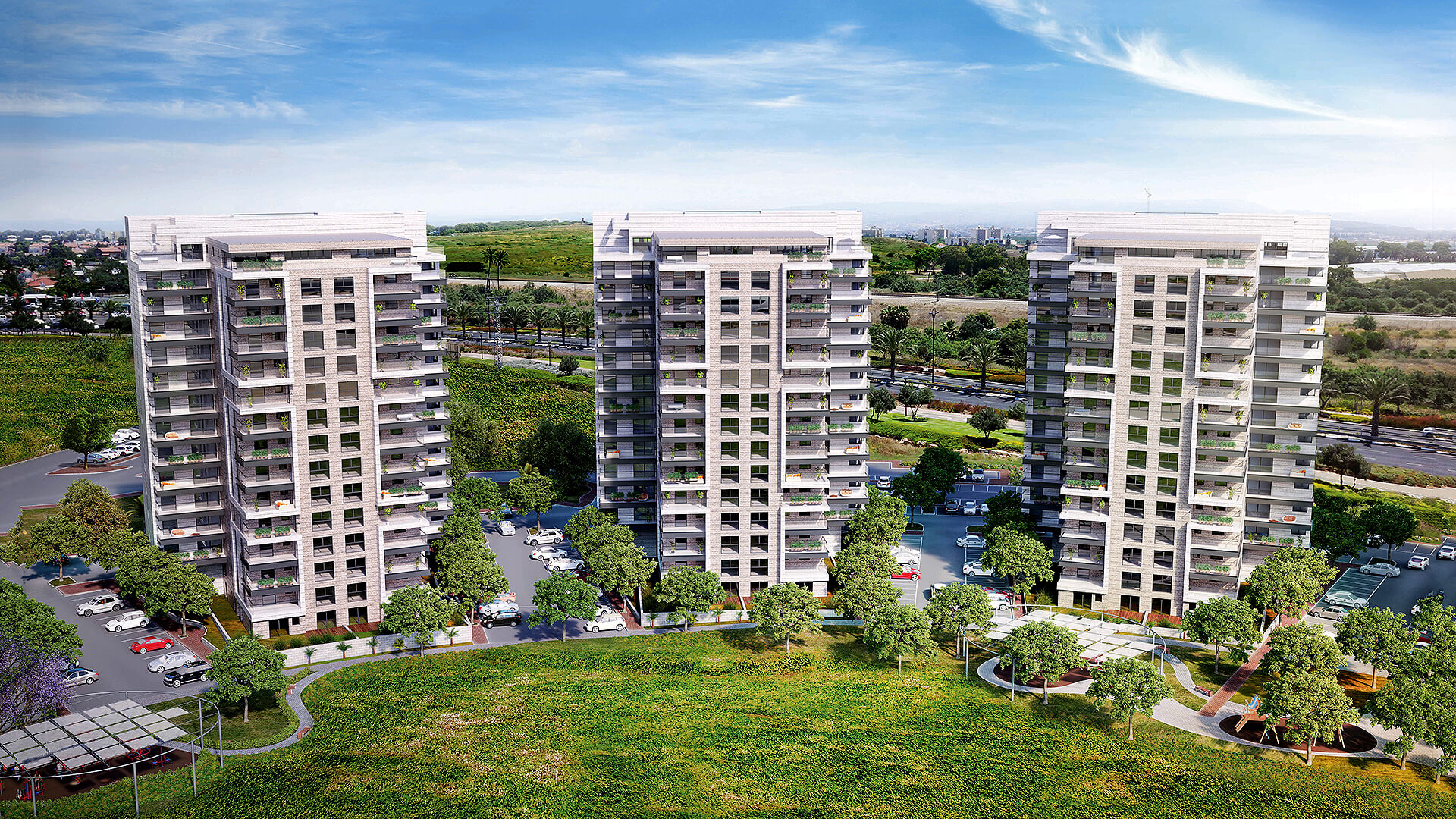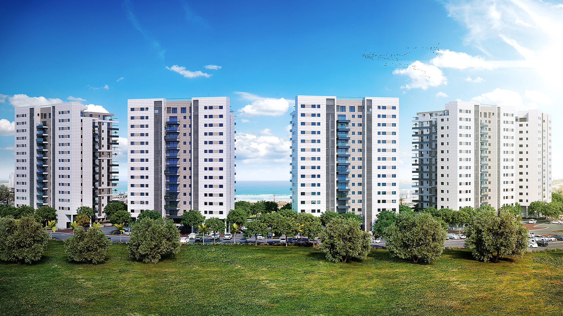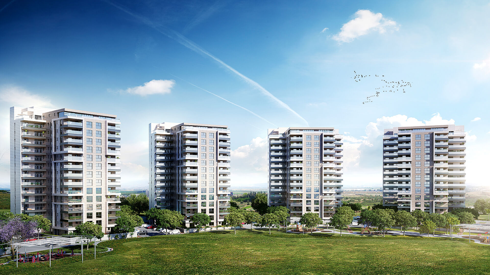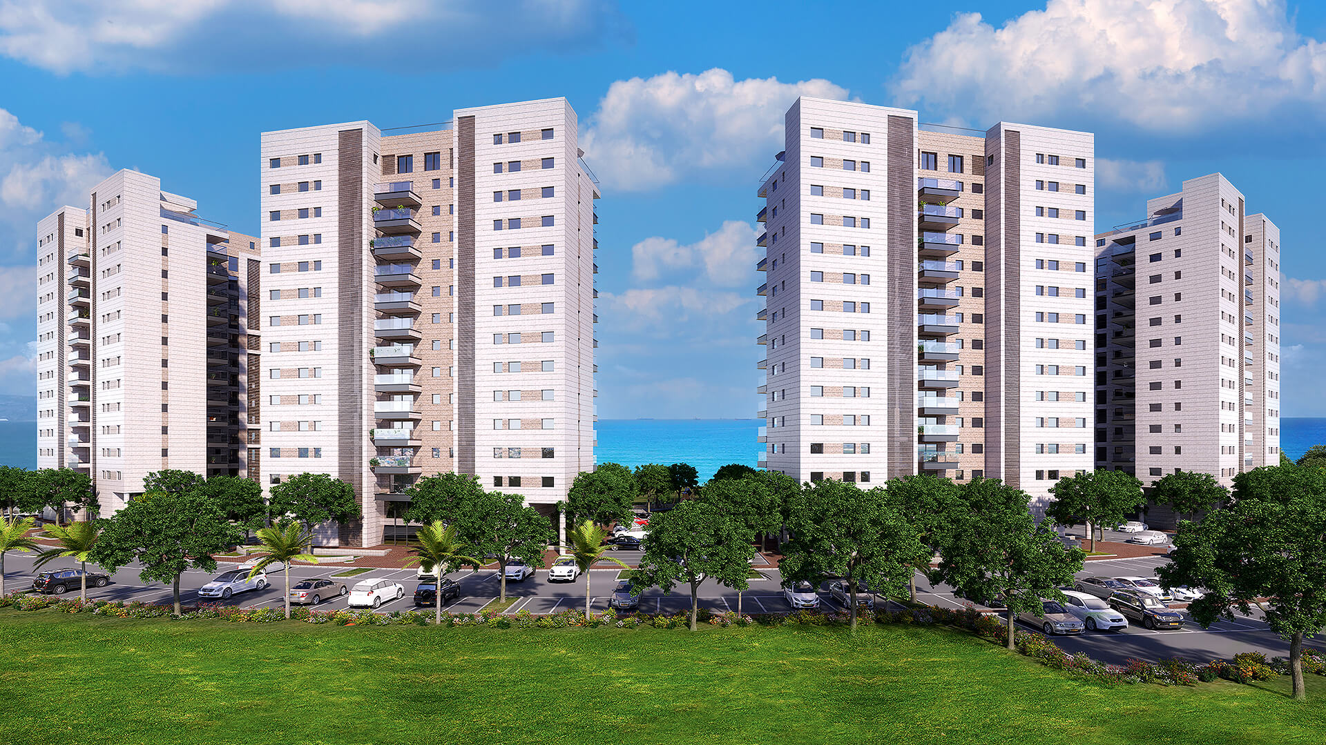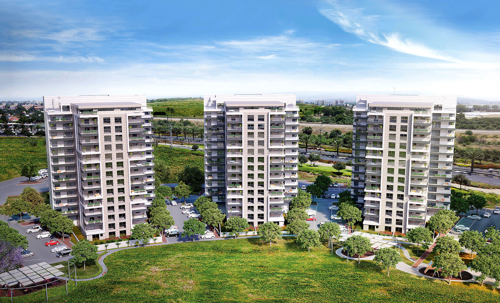 לובי יוקרתי ו-3 מעליות מהירות אדריכלות עכשווית, פיתוח נופי המחובר לפארק מרכזי ונוחות יום-יומית בכל פרטי השהות בבניין.