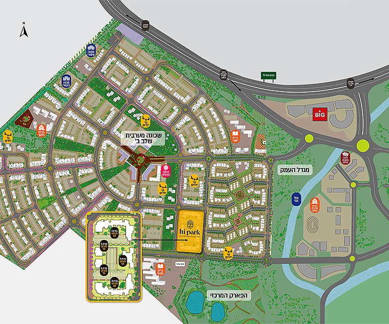 פארקים שכונתיים, אגם נופי ומתחם BIG חדש בכניסה לרובע – בילוי וקניות ממש ליד הבית.