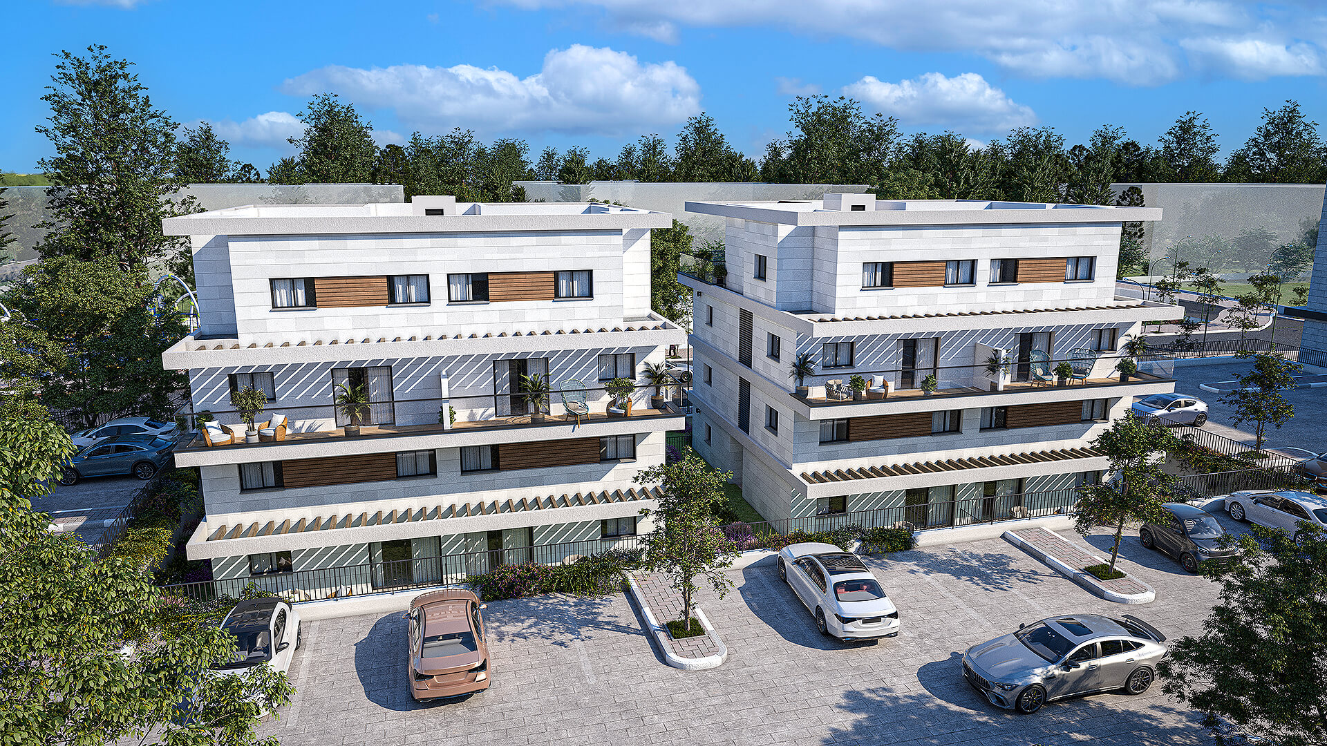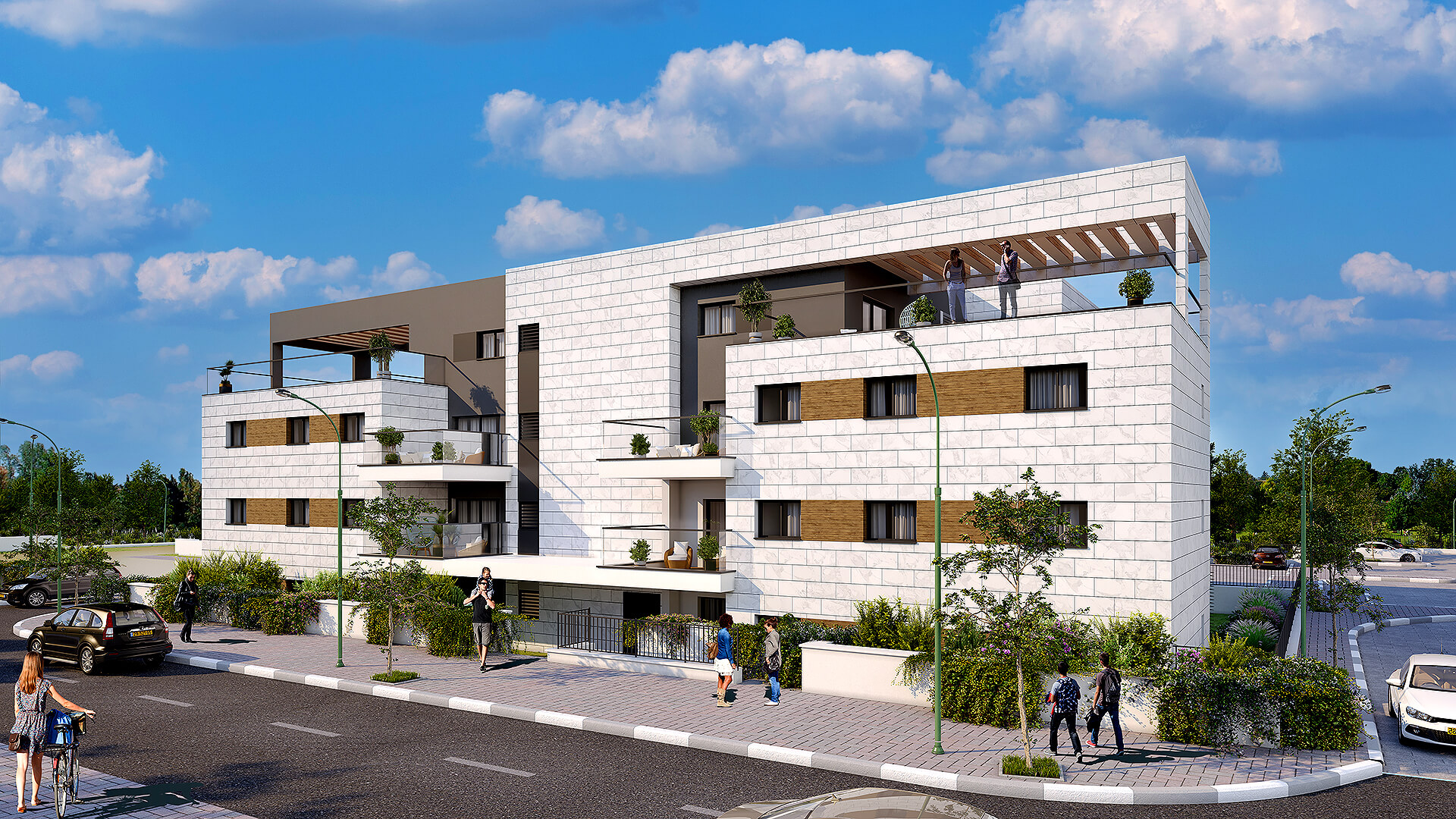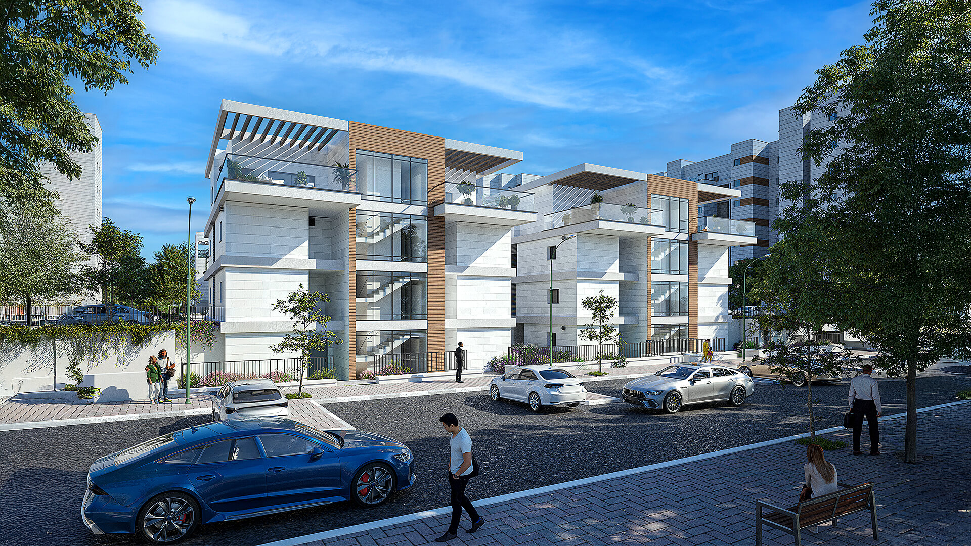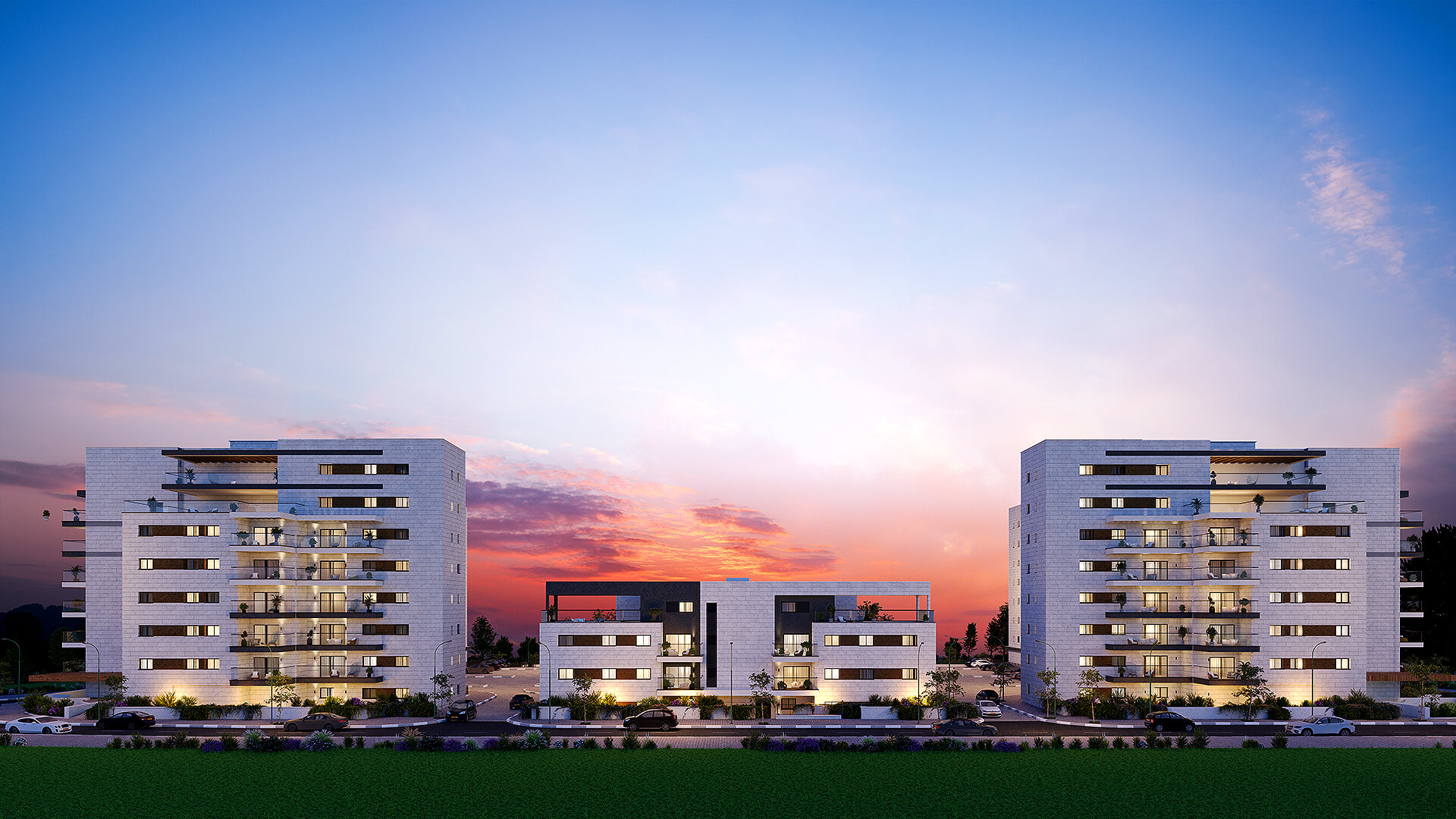 שכונה חדשה, מרחבים פתוחים 5 בניינים בני 3 עד 7 קומות במערב העיר, משולבים בפארק שכונתי ואגם – תכנון שמייצר שקט, פרטיות ואיכות חיים.