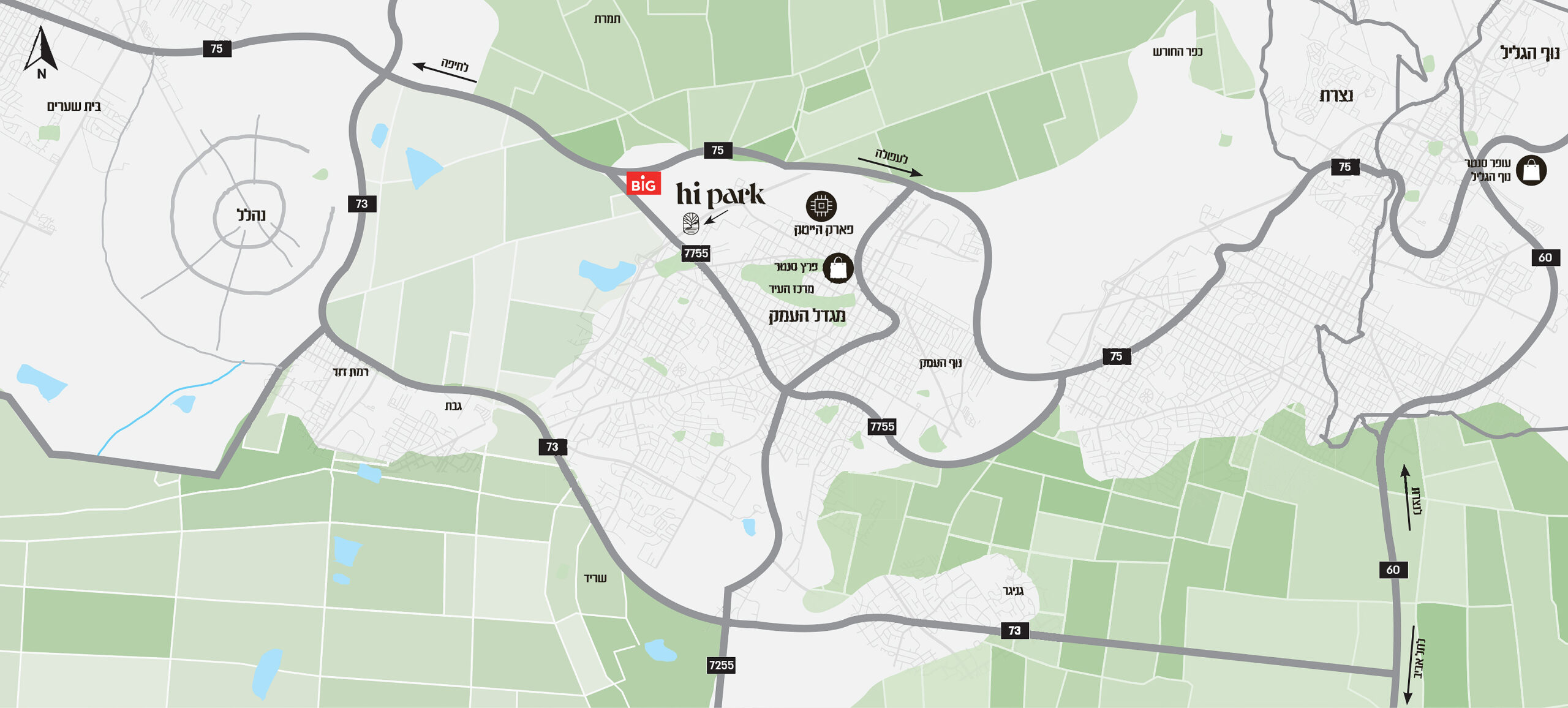 ליד ההיי-טק, ליד הכול צמוד לפארק ההייטק רמת גבריאל, במרחק קצר מצומת רמת ישי ואלונים, ונגישות מהירה לכביש 6 ולכל עורקי התנועה בצפון.