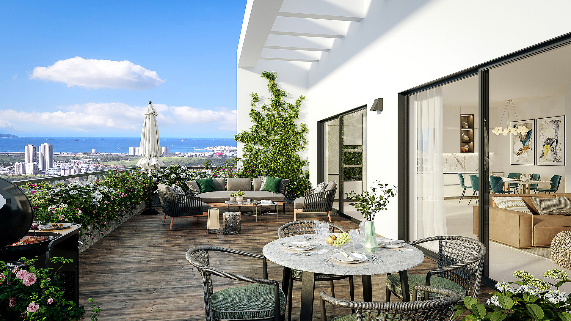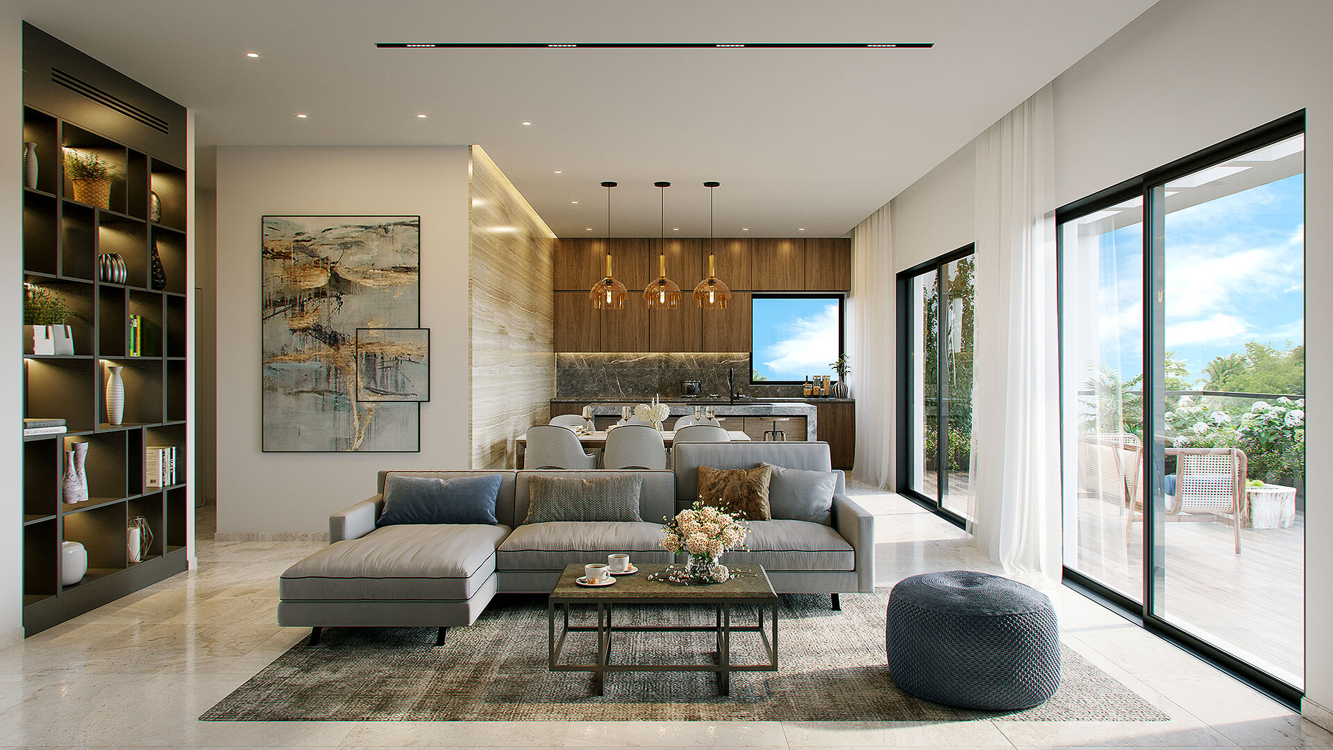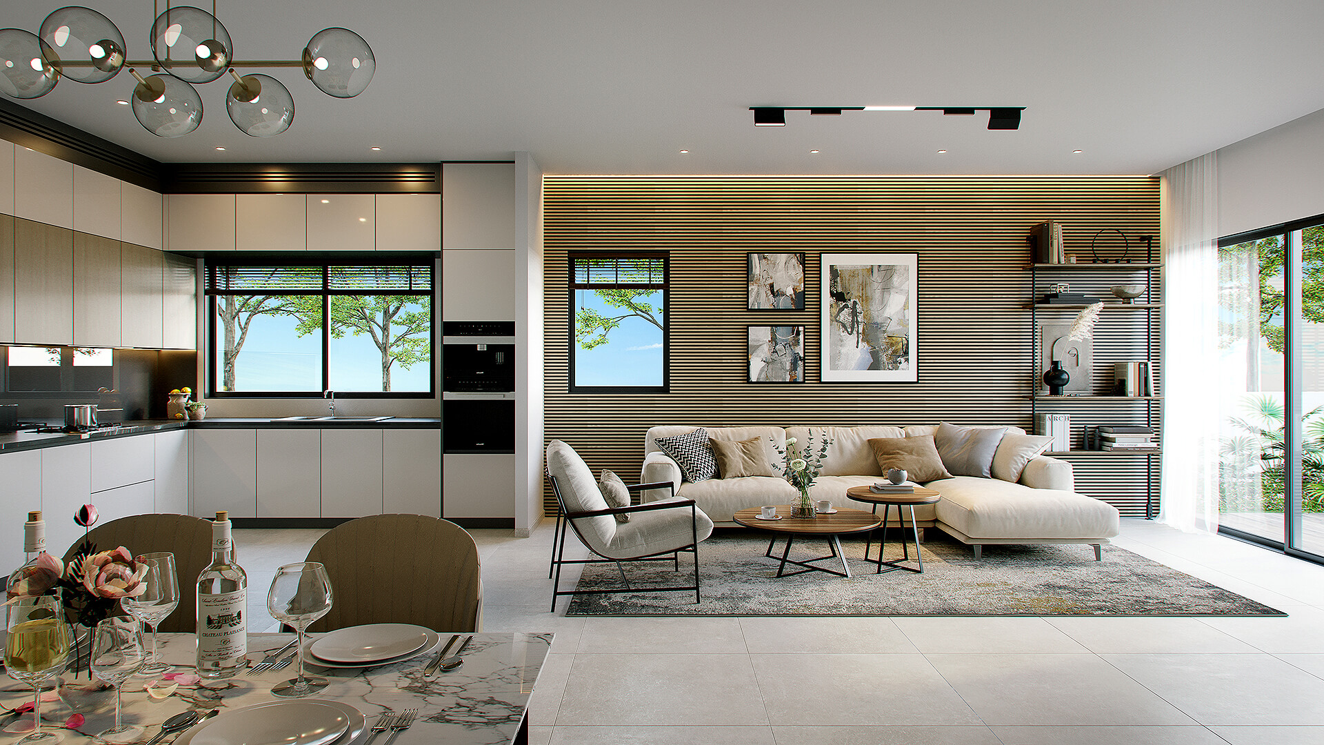 חללים רחבים ומרפסות נוף דגש על סלון אירוח מרווח, מטבח פתוח ומרפסת שמש המשתלבת עם אזור המגורים – התאמה מושלמת לאורח החיים של היום.